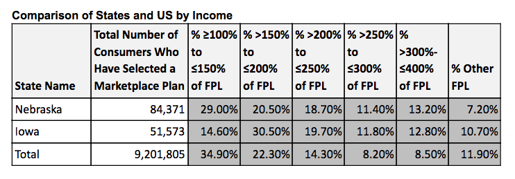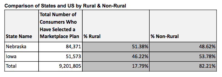 Nebraska additionally enrolled a much greater percentage of rural consumers compared to the rest of the country and Iowa.