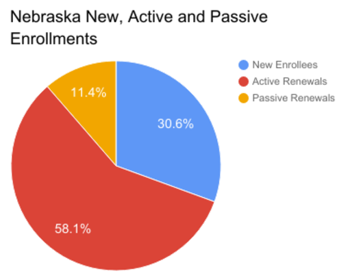 Passive renewals – when people were re-enrolled automatically in their same plan from a previous year – were much smaller in Nebraska.