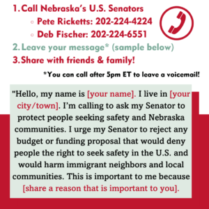 The Senate could vote as soon as this week on this legislation, so use your voice now! Call both of your U.S. Senators today and tell them to honor our values of welcoming and protecting children and families seeking safety.