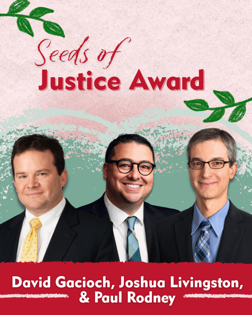 Together, these three attorneys—Paul Rodney, David Gacioch, and Joshua Livingston—demonstrated an unparalleled commitment to justice and the democratic process. Their tireless, pro bono advocacy in such high-stakes litigation ensured that crucial questions regarding reproductive rights remained before the people of Nebraska, reaffirming the fundamental principle that legal expertise can and should serve the public good, regardless of cost. Their work is a profound testament to their dedication to upholding civil and constitutional rights in our state.”– Rebecca Gould, Executive Director